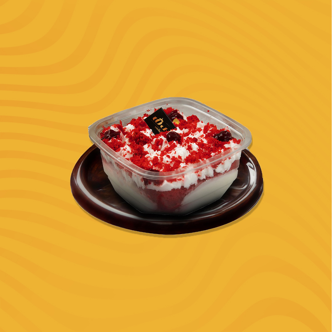 قشطوطة ريد فيلفت : كيك الريدفيلفت مع الحليب المكثف بالاضافة الي فينش الشيري والكريمة اللباني