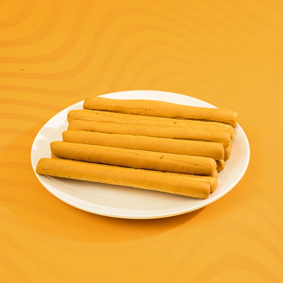 عجين البقسماط الهش ويضاف عليه قطع من السمسم